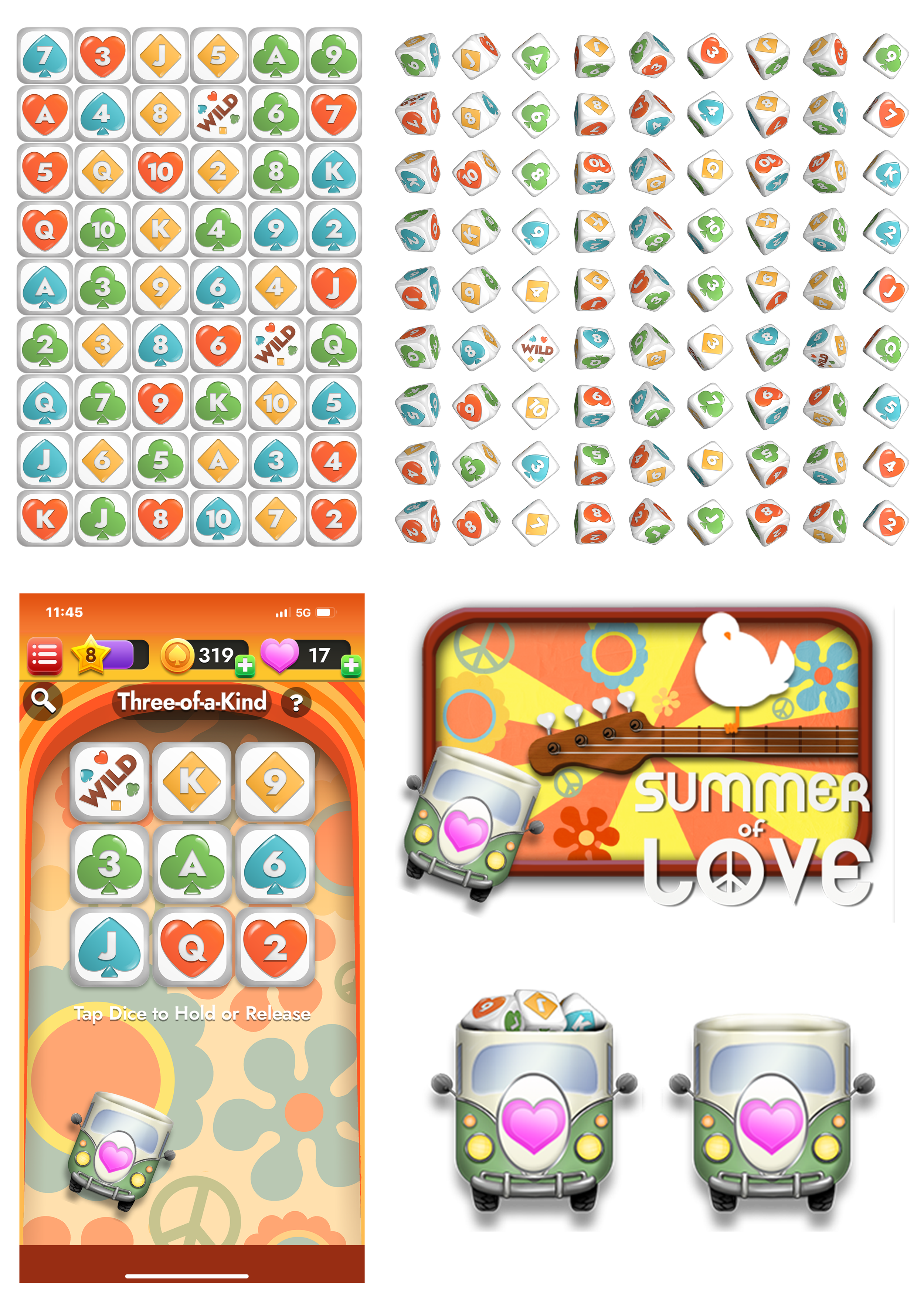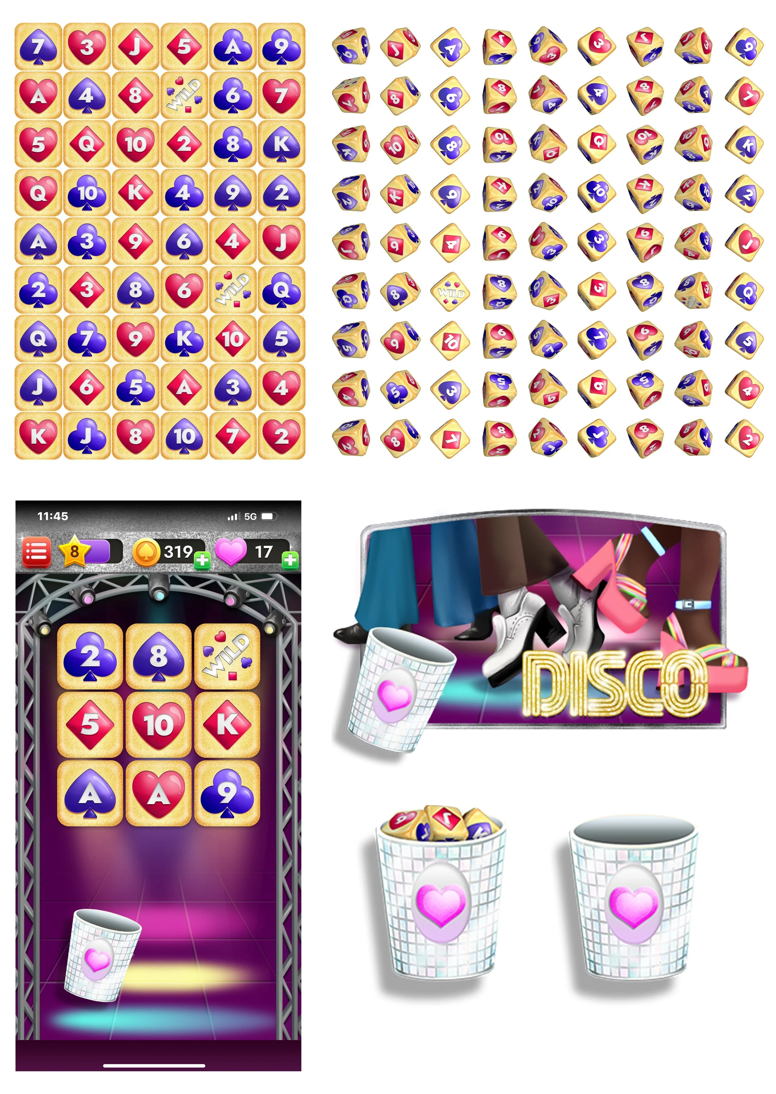 From February 2022 through November 2022, I worked as a Game Artist with Deck of Dice Gaming, LLC on their partnership with Hard Rock Cafe and Casino for their flagship game, Shake it Up. The partnership involved rebranding all of the theming elements in the game and UI to music genres and themes.